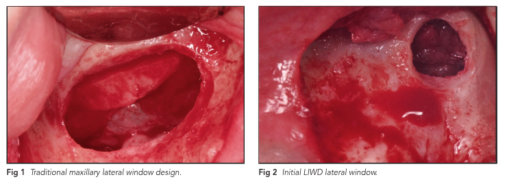 The differences between larger windows and the LIWD include window size, preservation of the lateral walls, blood supply to bone grafts, containment of the graft material, visibility, accessibility for repairing membrane perforations, and the ability to drain a sinus infection if needed…The proposed less-invasive window design provides distinct advantages for a successful sinus elevation procedure and decreased patient morbidity.